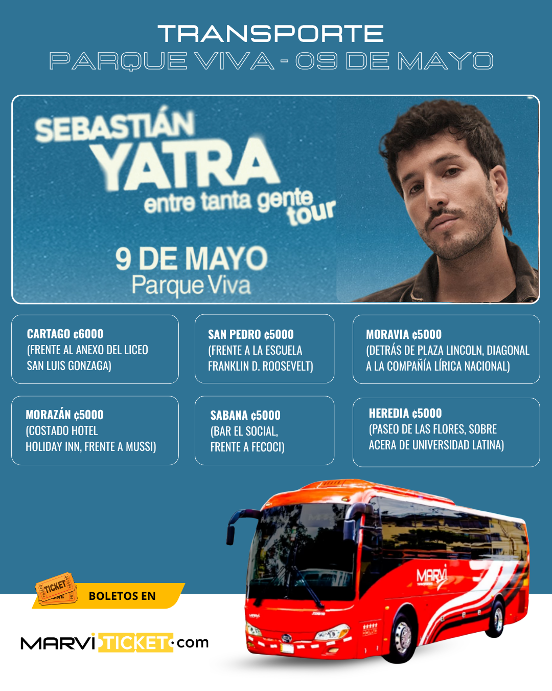 TE LLEVAMOS DE FORMA SEGURA Y CÓMODA, IDA Y VUELTA, AL CONCIERTO DE **SEBASTIAN YATRA**. SOMOS LA MEJOR OPCIÓN PARA DIS…